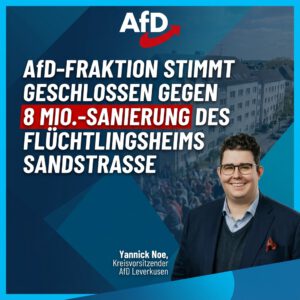 Bei der jüngsten Sitzung des Leverkusener Stadtrates wurde die kostenintensive Sanierung der Asylunterkunft in der Sandstraße beschlossen. Alle Fraktionen der Altparteien stimmten für die millionenschwere Maßnahme oder enthielten sich – einzig die AfD-Ratsfraktion stellte sich geschlossen dagegen.
